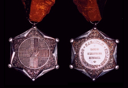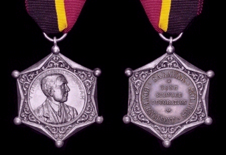 The Sarawak Government Long Service Medal : instituted by Rajah Sir Charles Johnston Brooke as the Sarawak Government Long Service Decoration to recognise exceptional, long and loyal service by Sarawak subjects in government sevice, community leaders, headmen and nobles. Modified and renamed by Rajah Sir Charles Vyner Brooke in 1940. Awarded as a hexagonal silver medallion in one class only. Bars were awarded for each decade of continuous service. Obsolete 1946.