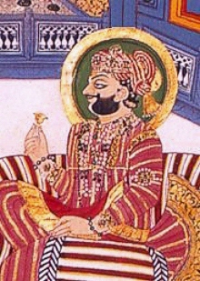 1803 - 1843 H.H. Raj Rajeshwar Saramad-i-Rajha-i-Hindustan Maharajadhiraja Maharaja Shri Man Singhji Sahib Bahadur, Maharaja of Jodhpur. b. 13th February 1783, son of Maharaj Shri Guman Singhji Sahib, by his first wife, Chauhaniji Kanwarani Abhai Kanwarji Maji Sahiba, daughter of Thakur Shri Gordhan Das, of Sointa, educ. privately. Adopted by his childless uncle, Maharaj Shri Sher Singhji, as his son and heir. Appointed as Heir Apparent by his grand father, 7th November 1791. Sent to Jalore for his own safety soon afterwards, where he remained throughout the reign of his cousin, Maharaja Bhim Singhji. Contested the succession when he came of age in 1798 and finally succeeding on his cousin’s death, 19th October 1803. Recognised by the principal nobles and his subjects after occupying the fort, 5th November 1803. Installed on the gadi at Sringar Chowki, Mehrangarh, Jodhpur, 17th January 1804. Temporarily abdicated his ruling powers in favour of his eldest son, Yuvraj Shri Maharajkumar Chattar Singhji, on 19th April 1817. Resumed control again, 6th January1818. Entered into treaty relations with the HEIC 6th January 1818. Opposed by many of his principal nobles throughout his reign, he depended on the support of successive factions. The last of these were the Nath family, the Maharaja’s spritual advisers, who came to control state affairs and turned him into a recluse. Many of the nobles fled to neighbouring principalities, state repression having become entirely vengeful and cold-blooded. The British authorites eventually intervened in 1839, banishing the Nath family from the state four years later. A great patron of painting, music, literature and peotry, despite his descent into depression and near insanity. m. (first) H.H. Shri Bada Bhatianiji Maharani Rai Kanwarji Maji Sahiba, daughter of Thakore Shri Suraj Mal [Bhagwandasot], of Kharia, in Jaisalmer. m. (second) H.H. Shri Chawadiji Maharani Badan Kanwarji Maji Sahiba, daughter of Thakore Shri Salamsinhji Nathusinhji, of Mansa, in Gujarat. m. (third) H.H. Shri Bada Tanwarji Maharani Bhom Kanwarji Maji Sahiba, daughter of Thakur Shri Bhaktawar Singh [Raodansinghot], of Lakhasa, in Bikaner. m. (fourth) at Jodhpur, 1814, H.H. Shri Bada Chauhaniji Maharani Shri Suraj Kanwarji Maji Sahiba, daughter of Thakuran Raj Shri Shri Rai Singh [Jagatsinghot], of Nibaj, in Sirohi. m. (fifth) H.H. Shri Ladi Bhatianiji Maharani Gend Kanwarji Sahiba, daughter of Thakore Shri Lakshman Singh [Bhawanisinghot], of Gajuri. m. (sixth) H.H. Shri Bada Deoriji Maharani Anand Kanwarji Sahiba, daughter of Thakuran Raj Shri Sarup Singhji [Kesharsinghot], of Badi Panti Mandar, in Sirohi. m. (seventh) at Marwar, 3rd September 1813, H.H. Shri Kachhawahi Maharani Suraj Kunwar Sahiba, daughter of H.H. Saramad-i-Rajha-i-Hindustan, Raj Rajeshwar Shri Maharajadhiraja Maharaja Sawai Pratap Singh Bahadur, Maharaja of Jaipur. m. (eighth) H.H. Shri Ladi Tanwarji Maharani Birad Kanwarji Sahiba, daughter of Thakur Shri Bhaktawar Singh [Raodansinghot], of Lakhasa, in Bikaner. m. (ninth) H.H. Shri Tija Bhatianiji Maharani Shri Pratap Kanwarji Maji Sahiba (b. at Jakhan, 1816; d. at Mehrangarh, Jodhpur, 1886), educ. privately, a distinguished poetess, daughter of Thakur Shri Sher Singh [Bishansinghot] (or of Bhati Goyand Dasji?), of Jakhan, in Jodhpur Marwar. m. (tenth) H.H. Shri Bhatianiji Maharani Shri Anup Kanwarji Sahiba, daughter of Thakur Shri Hari Singh [Fatehsinghot], of Saduri, in Bikaner. m. (eleventh) H.H. Shri Panchma Bhatianiji Maharani Shri Jas Kanwarji Maji Sahiba, daughter of Thakur Shri Mohabar Singh, of Gorhra. m. (twelfth) H.H. Shri Ladi Deoriji Maharani Tilak Kanwarji Sahiba, daughter of Thakuran Raj Shri Suraj Mal [Bakhatsinghot], of Chhoti Panti Mandar, in Sirohi. m. (thirteenth) 1814, H.H. Shri Ladi Chauhaniji Maharani Shri Anjan Kanwarji Sahiba, daughter of Thakur Shri Rai Singh [Jagatsinghot], of Nimbaj, in Sirohi. m. (a) Paswanji Chandan Raiji Sahiba (d.s.p.). m. (b) Paswanji Rang Roop Raiji Sahiba. m. (c) Paswanji Champal Raiji Sahiba. m. (d) Paswanji Tulchha Raiji Sahiba. m. (d) Paswanji Saroop Jotji Raiji Sahiba. m. (e) Paswanji Diddhar Raiji Sahiba (d.s.p. by sati at Jaswant Thara, Mehrangarh, Jodhpur, 4th September 1843). m. (f) Paswanji Amrit Raiji Sahiba (d.s.p.). m. (g) Paswanji Sukh Vaibhavji Sahiba (d.s.p. by sati at Jaswant Thara, Mehrangarh, Jodhpur, 4th September 1843). m. (h) Paswanji Champal Raiji Chhota Sahiba (d.s.p.). m. (i) Paswanji Roopjot Raiji Chhota Sahiba. m. (j) Paswanji Ram Raiji Chhota Sahiba (d.s.p.). m. (k) Paswanji Sunder Raiji Bada Sahiba (d.s.p.). m. (l) Paswanji Sunder Raiji Chhota Sahiba. m. (m) Paswanji Sunder Raiji Teeja Sahiba (d.s.p.). m. (n) Paswanji Chandan Raiji Sahiba (d.s.p. by sati at Jaswant Thara, Mehrangarh, Jodhpur, 4th September 1843). m. (o) Paswanji Sukhsej Raiji Sahiba, a niece of Paswan Gulab Raiji. He d. at Mandore, 4th September 1843 (cremated at Jaswant Thara, Mehrangarh, Jodhpur, when one Maharani, four concubines, and a slave girl committed sati on his funeral pyre), having had issue, five sons and four daughters: