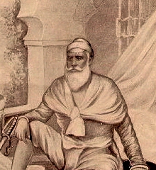 1813 - 1845 H.H. Raj Rajeshwar Yadu Vansha Vatans Bhatti Kul Bushan Sri Maharaja-i-Rajgan, Maharaja Karam Singh, Mahendra Bahadur, Maharaja of Patiala. b. at Patiala Fort, 16th October 1797, eldest son of H.H. Yadu Vansha Vatans Bhatti Kul Bushan Sri Maharaja-i-Rajgan, Maharaja Sahib Singh, Mahendra Bahadur, Maharaja of Patiala, by his second wife, H.H. Maharani Shri Aus Kaur Sahib, sometime Maharani Regent of Patiala, educ. privately. Succeeded on the death of his father, 26th March 1813. Installed on the gadi at the City Palace, Patiala Fort, 30th June 1813. Reigned under the Regency of his mother until 1823, when he was invested with full ruling powers. A loyal supporter of the British during the Anglo-Nepalese War in 1814, he received sixteen districts of the annexed territories in reward. Supported the British during the First Anglo-Sikh War. Raised to the hereditary title of Raj Rajeshwar. Acquired the hill station of Simla in 1830, in exchange for lands in Baranli. m. at Moonak, H.H. Maharani Sri Karam Kaur Sahiba, daughter of Sardar Bhanga Singh Thanesar, of Pahowa. He d. at Patiala Fort, 23rd December 1845 (cremated at Qila Mubarak), having had issue (the Karami Brar Sidhu), two sons: