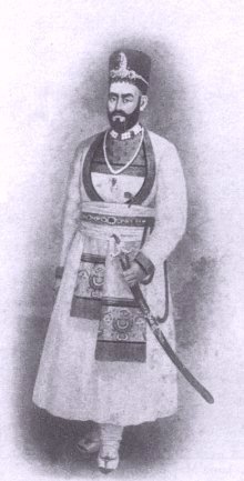 1840 - 1855 Nawab Muhammad Said Khan Bahadur, Nawab of Rampur. b. 19th May 1786, fourth son of ‘Ali Jah, Amir ul-Umara, Nasir ul-Mulk, Mukhlis ud-Daula, Nawab Haji Ghulam Muhammad Khan Bahadur, Mustaid Jang, Nawab of Rampur, educ. privately. Entered government service and rose to be Deputy Collector at Dudain. Chosen to succeeded on the death of his cousin on 5th July 1840. Ascended the musnaid, at the Diwankhana, Qila-i-Mualla, Rampur, 20th August 1840. m. several wives including (first) Nawab Fath un-nisa Begum Sahiba, daughter of Muhammad Nur Khan. He d. at the Macchi Bhawan, Qila-i-Mualla, Rampur, 1st April 1855 (bur. there at the Qila-i-Mualla Imambara), having had issue, five sons and one daughter: