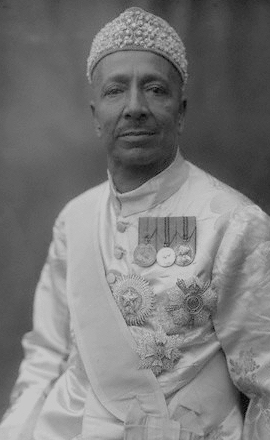 1889 - 1930 Major-General H.H. ‘Ali Jah, Farzand-i-Dilpazir-i- Daulat-i-Inglishia, Mukhlis ud-Daula, Nasir ul-Mulk, Amir ul- Umara, Nawab Syed Sir Hamid ‘Ali Khan Bahadur, Mustaid Jang, Nawab of Rampur, GCSI (3.6.1921), GCIE (1.1.1908), GCVO (12.12.1911). b. at Rampur, 31st August 1875, elder son of H.H. ‘Ali Jah, Farzand-i-Dilpazir-i-Daulat-i-Inglishia, Mukhlis ud-Daula, Nasir ul-Mulk, Amir ul-Umara, Nawab Muhammad Mushtaq ‘Ali Khan Bahadur, Mustaid Jang, Nawab of Rampur, by his second wife, H.H. Nawab Khurshid Jahan Begum Sahiba, educ. privately. Succeeded on the death of his father, 25th February 1889 and ascended the musnaid 27th February 1889. Reigned under a Council of Regency until he came of age and was invested with limited ruling powers at the Diwankhana, Qila-i-Mualla, Rampur, 4th April 1894. Presdt Council of Administration 29th January 1894-12th May 1896. Invested with full ruling powers by the Viceroy, Lord Elgin, in person, 1st June 1896. Confirmed in the hereditary titles of ‘Ali Jah, Mukhlis ud-Daula, Nasir ul-Mulk, Amir ul-Umara, and Mustaid Jang, 29th July 1909. Attended the Delhi Coronation Durbar 1903. Cmsnd as Hon Capt British Army 6/2/1895, attached as Hon Officer 9th Regt Bengal Lancers 28/2/1896, prom Hon Maj 22/6/1897, Hon Lt-Col 25/6/1909, Hon Col 3/6/1910, and Hon Maj-Gen 14/6/1928. Hon Col Hodson’s Horse (4th Duke of Cambridge’s Own Lancers), IA 26/4/1929-1930. Colonel-in-Chief Rampur Lancers 1923-1930, Rampur Imperial Service Infantry 1910-1923, and Rampur Pioneers 1923-1930. Hon ADC to the King-Emperor George V, 3/6/1910-1930. Raised to a personal salute of 15-guns, in recognition of War services, 1st January 1918 (made permanent 1st January 1921). Presdt. All-India Music Conf. at Delhi 1918. Founded the Hamidiya Decoration (Nishan-i-Hamidiya) in three classes in 1894, and the Nishan-i-Iqbal in three classes. Rcvd: Delhi Durbar gold medals (1903 and 1911). m. (first) 30th February 1894 (div. 25th June 1922) H.H. Nawab Mulka uz-Zamani Sultanat Ara Begum Sahiba (d. of a broken heart, 29th July 1925), daughter of Major H.H. Ihtisham ud-Daula, Nawab Muhammad Ismail Khan Bahadur, Firuz Jang, Nawab of Jaora. m. (second) H.H. Nawab Shahanshah Dulhan Begum Sahiba. m. (third) at Moradabad, September 1897, H.H. Nawab Tajdar Begum Sahiba. m. (fourth) H.H. Nawab Huzur Aliya Begum Sahiba (d. at Rampur, 10th January 1938). m. (fifth) in late 1898, H.H. Nawab Sadiq Dulhan Begum Sahiba [Achan Begum]. m. (sixth) H.H. Iqbal Dulhan Begum Sahiba (d. January 1911). m. (seventh) at Rampur, 31st December 1900, a widow, daughter of Colonel Mahmud Shah Khan, a nephew of H.H. Nawab Janab-i-Aliya Begum Sahiba. m. (eighth) at Naini Tal, September 1901 (muta), H.H. Nawab Husan Jahan Begum Sahiba [Husna Begum], formerly the wife of Sahibzada Ahmad Husain Khan. m. (ninth) H.H. Nawab Musharraf Dulhan Begum Sahiba (d. 21st June 1920). m. (tenth) H.H. Nawab Akhtar Jahan Begum Sahiba (b. at Agra, 1895), née Mary Florence (Flora) Sarks. He d. at the Hamid Manzil, Qila-i-Mualla, Rampur, 20th June 1930 (bur. Karbala, Iraq), having had issue, four sons and six daughters: