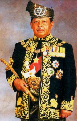 1984 - 1989 H.M. Paduka Sri Baginda Sultan Mahmud Iskandar al-Haj ibni al-Marhum Sultan Sir Ismail, by the Grace of God of the States and Territories of Malaysia Yang di-Pertuan Agong. b. at Istana Semayun, Johor Bahru, 8th April 1932, third and eldest surviving son of Colonel H.R.H. Paduka Sri Sultan Sir Ismail ibni al-Marhum Sultan Sir Ibrahim, Sultan and Yang di-Pertuan of the State and Territory of Johor, KBE, CMG, by his first wife, H.R.H. Sultana Amina Ismail, educ. Ngee Heng Primary Sch and Sultan Abu Bakar English Coll, Johor Bahru, Trinity Grammar Sch, Sydney, NSW, Australia, and South Devon Tech Coll, Torquay. Joined Johor Civil Service 1956-1959 and served in various district offices, land office, state secretariat, forest office and treasury. Appointed as Heir Apparent and formally invested with the title of Tunku Mahkota at Johor Bahru, 8th May 1959. Deprived of his title and excluded from the succession by his father, 10th August 1961. Granted the title of Raja Muda, 1st December 1966 and re-instated as Heir Apparent and Tunku Mahkota, 29th April 1981. Succeeded on the death of his father as Sultan and Yang di-Pertuan of the State and Territory of Johor, 10th May 1981. Proclaimed and installed, at the Istana Besar, Johor Bahru, 11th May 1981. Became King of Malaysia with the title of Yang di-Pertuan Agung and style of Majesty, 26th April 1984. Installed at Kuala Lumpur, 15th November 1984. Completed his reign and returned to Johor, 25th April 1989. Hon Maj Johor Military Forces 1959, Private TA 1960, Col-Cdt Johor Military Forces 10/5/1981-22/1/2010, and Col-in-Chief Malaysian Special Forces Regt (Gerup Gerak Khas), prom Brig-Gen TA. Field Marshal Malaysian Army, Admiral of the Fleet Royal Malaysian Navy, and Marshal of the Royal Malaysian Air Force 24/7/1984. Hon Master Parachutist, Singapore Armed Forces 2007. Chancellor Univ Teknologi Malaysia 12/12/1981-22/1/2010. Hon. D.LL. (National Univ. of Singapore) 2007. Presdt Malaysian Golf Assoc. Hon Mbr Republic of Singapore Yacht Club, Go-Kart Club of Singapore, etc. Rcvd: DK (28.10.1959, DK II 8.5.1959), SPMJ (28.10.1967), SSIJ (28.10.1974), PIS I, BIS 1st class, Sultan Ismail Coron Medal (1960), SPDK (1972), DK of Brunei (1972), Trengganu (1982), Perak (1983), and Kelantan (1984), etc. m. (first) at Istana Bukit Stulang, Johor Bahru, 5th January 1956 (div. at Johor Bahru, 9th June 1962 and Singapore, October 1962), Y.A.M. Enche’ Besar Hajjah Kalthom binti ‘Abdu’llah (b. in England, 2nd December 1935), née Josephine Ruby Trevorrow, Presdt Johore Bahru Family Planning Assoc 1960-1962, Dir Johor Red Cross Soc 1959-1962, raised to the title of Enche’ Besar with the style of Yang Amat Mulia 22nd November 2010, rcvd: DK (22.11.2010), only daughter of Reginald Trevorrow, a textile manufacturer from Torquay, Cornwall. m. (second) at Kuala Lumpur, 20th August 1961, H.R.H. Tunku Puan Hajjah Zanariah binti al-Marhum Tengku Panglima Raja Tengku Long Ahmad [Tunku Puan Hajjah Zanariah Iskandar] (b. at Dusun Green, Pasir Mas, Kelantan, 5th July 1940), educ. Sultana Zainab Sch, Kelantan, Bukit Nanas Convent, Kuala Lumpur, Sultan Ibrahim Coll, Pasir Mas, and Upper Chime Sch, Isle of Wight, entitled Tunku Puan with the style of Yang Maha Mulia (or Her Royal Highness) from 11th May 1981, raised to the title of Sultana with the style of Royal Highness and formally installed, at the Istana Besar, Johor Bahru, 11th May 1981, styled Raja Permusairi Agung with the style of Majesty from 26th April 1984 to 26th April 1989, and Tunku Puan Hajjah Zanariah Iskandar from 16th February 2011, Chancellor Univ Technology Malaysia (UTM) until 2010, Patron Iskandar Puteri Fndn, and the Women’s Council of Johor (MAWAR) since 1982, “Miss Malaysia 1960”, rcvd: DK of Johor (28.10.1972), and Kelantan, younger sister of Sultana Nora and daughter of Y.B.M. Tengku Long Ahmad bin Tengku ‘Abdu’l Ja’afar, Tengku Panglima Raja, of Kelantan, by his wife, Che’ Puan Hajjah Fatima binti Dato ‘Abdu’l Hamid, daughter of Dato’ ‘Abdu’l Hamid bin ‘Abu Bakar (suppositious illegitimate son of Sultan ‘Abdu Bakar). He d. at Puteri Specialist Hospital, Johor Bahru, 22nd January 2010 (bur. there at the Sultan Abu Bakar Mausoleum, Bukit Mahmudiah), having had issue, two sons and eight daughters – see Malaysia (Johor).