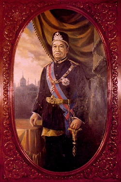 1898 - 1938 Colonel H.H. Paduka Sri Sultan Sir 'Ala ud-din Sulaiman Shah ibni al-Marhum Yang di-Pertuan Muda Musa [Marhum 'Atiqu'llah], Sultan and Yang di-Pertuan of the State of Selangor Dar ul-Ihsan, GCMG (3.6.1929, KCMG 1.1.1912, CMG 29.6.1906), KCVO (27.10.1936). b. at Kuala Selangor, 11th September 1863, eldest son of H.H. Raja Musa ibni al-Marhum Sultan Sir 'Abdu'l Samad Shah, Yang di-Pertuan Muda, by his first wife, Y.M. Raja Buntal Raimah binti Raja Barkat [Encik' Uti'], elder daughter of Y.M. Raja Barkat bin Raja Husain, Tengku Panglima Raja, educ. Raffles Institution, Singapore, and The Rajas' Sch., Kuala Lumpur. Appointed as Heir Apparent with the title of Raja Muda, 10th December 1887. Succeeded on the death of his father, 6th February 1898. Installed at the Istana Bandar, Jugra, Kuala Langat, 17th February 1898. Removed his capital to Klang in 1903. Crowned at the Istana Mahkota Puri, Klang, 22nd October 1903. Hon. Col. Selangor Btn., MVF, 18/6/1919. Hon. Col. 2nd (Selangor) Btn. Malay States Vol. Regt. 1/8/1931-1938. Patron Victoria Institution 1898-1938 (Trustee 1893-1898), Setia Ihsan Club, etc. m. (first) at Jugra, Kuala Langkat, 1891, H.H. Tunku Maharum binti Tengku Zia ud-din (d. at Istana Mahkota Puri, Klang, 1908, bur. there at the Sultan Sulaiman Royal Mausoleum), installed as Tengku Ampuan of Selangor at Istana Bandar, Jugra, Kuala Langkat, 17th February 1898, crowned as Tengku Ampuan Paduka Sri Negara at the Istana Mahkota Puri, Klang, 4th November 1903, daughter of Y.A.M. Tunku Zia ud-din ibni al-Marhum Sultan Zain al-Rashid al-Mu'azzam Shah [Tunku Kudin] of Kedah, sometime Viceroy of Selangor, by his wife, Y.A.M. Tunku 'Arfah binti al-Marhum Sultan Sir 'Abdu'l Samad Shah, daughter of H.H. Paduka Sri Sultan Sir 'Abdu'l Samad Shah ibni al-Marhum Tunku 'Abdu'llah, Sultan of Selangor, KCMG. m. (second) ca. 1895, Cik Hasnah binti Pilong (bur. Royal Mausoleum, Jugra, Kuala Langat), née Cik Amina binti Pilong, a commoner. m. (third) 1899, Hajjah Sofia binti Haji 'Abdu'l 'Abdu'l Ghani, daughter of Imam Haji 'Abdu'l Ghani, of Klang. m. (fourth) ca 1908, Cik Rogayah binti Muhammad Amin (d. 1909). m. (fifth) ca 1908, Cik Chik binti 'Abdu'llah (d. 11th June 1949). m. (sixth) at Kuala Kangsar, May 1910, H.H. Raja Zubaida binti al-Marhum Sultan 'Abdu'l Jalil Nasr ud-din Karamatu'llah Shah, Tengku Ampuan (d. 17th October 1918), crowned at Klang 1910, daughter of H.H. Maulana Paduka Sri Sultan Sir 'Abdu'l-Jalil Nasir ud-din al-Mukhataram Shah Radiu'llah ibni al-Marhum Paduka Sri Sultan Sir Idris Murshid al-Azzam Shah Rahmatu'llah, Sultan of Perak, KCMG, by his wife, H.H. Yong Safiah binti Muhammad Yunus, Raja Permaisuri. m. (seventh) ca. 1910, Cik Maimuna binti 'Abdu'llah [Cik Mon], Cik Anjung Negara (b. ca. 1900; d. 22nd February 1972). m. (eighth) ca 1912, Cik Bidayah binti Ahmad, Cik Puri Negara (d. 11th September 1955). m. (ninth) at Kuala Kangsar, September 1921, H.H. Raja Fatima binti al-Marhum Sultan Sir Idris Murshid al-Azzam Rahmatu'llah Shah (b. 1899; d. 8th April 1983, bur. Sultan Sulaiman Royal Mausoleum, Klang), crowned as Tengku Ampuan Paduka Sri Negara and granted the style of Her Highness 11th January 1922, youngest daughter of Colonel H.H. Maulana Paduka Sri Sultan Sir Idris Murshid al-Azzam Shah Rahmatu'llah ibni al-Marhum Raja Bendahara Alang Iskandar, Sultan and Yang di-Pertuan of the State of Perak, GCMG, GCVO, by his second wife, H.H. Cik Haji Ngah Uteh Mariah binti Haji Sulaiman, Tengku Permaisuri, daughter of Haji Cik Sulaiman. m. (tenth) ca 1925, Y.M. Raja Bulat binti Raja Ahmad (b. 1907; d. 10th January 1982). m. (eleventh) ca 1933, Cik Johari binti 'Abdu'llah (d. 7th January 1981). He d. at the Istana Mahkota Negara, Klang, 31st March 1938 (bur. Sultan Sulaiman Royal Mausoleum, Klang), having had issue, twenty-six sons and nineteen daughters: