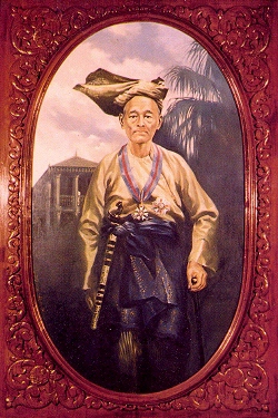 1857 - 1898 H.H. Paduka Sri Sultan Sir 'Abdu'l Samad Shah ibni al-Marhum Tengku 'Abdu'llah, Sultan and Yang di-Pertuan of the State of Selangor Dar ul-Ihsan, KCMG (29.5.1886). b. 1804, eldest son of Y.A.M. Raja 'Abdu'llah ibni al-Marhum Sultan Ibrahim, Tengku Panglima Besar, by his second wife, Che' Lipah, educ. privately. Invested with the title of Tengku Panglima Raja 1844. Succeeded on the death of his paternal uncle and father-in-law, 6th January 1857. Reigned under the Regency of his uncle until he came of age and was installed with full ruling powers, 1859. Entered into a Treaty of Federation to form the Federated Malay States July 1895. Received a Sword of Honour from Queen Victoria in 1879, in gratitude for the rapid abolition of debt slavery. Patron Victoria Institution 1893-1898. m. (first) at the Istana, Kuala Selangor, 1844 (div. 1873), H.H. Raja 'Atfah binti al-Marhum Sultan Muhammad Shah, Tengku Ampuan, daughter of H.H. Paduka Sri Sultan Muhammad Shah ibni al-Marhum Sultan Ibrahim, Sultan and Yang di-Pertuan of Selangor, by his second wife Raja Aisha binti Sultan 'Ali 'Ala ud-din Shah, fifth daughter of H.H. Paduka Sri Sultan 'Ali I 'Ala ud-din Shah ibni al-Marhum Raja Kambodja, Yang di-Pertuan Muda of Riau. m. (second) before 8th November 1874, … m. (third) at the Istana Bandar Temasha, Jugra, Kuala Langat, 1887, Che' Fatima binti Haji 'Abdu'l Ghani, daughter of Imam Haji 'Abdu'l Ghani, of Klang. He d. at the Istana Bandar Temasha, Jugra, Kuala Langat, 6th February 1898 (bur. there at the Sultan 'Abdu'l Samad Mausoleum), having had issue, six sons and four daughters: