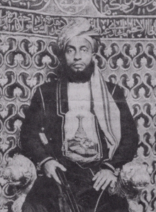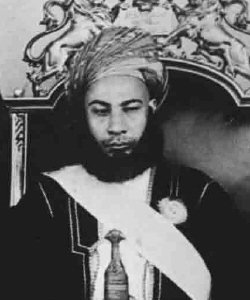 1893 - 1896 H.H. Sultan Sayyid Hamad bin Thuwaini, Sultan of Zanzibar and its dependencies, GCSI (23.2.1894). b. at Muscat, Oman, 1857, seventh and youngest son of H.H. Sayyid Thuwaini bin Sa’id, Sultan of Muscat and Oman and dependencies, by his wife, Sayyida Ghaliya bint Salim Al-Sa’idiyah, daughter of H.H. Sayyid Salim bin Sultan, Sultan of Muscat and Oman and dependencies, educ. privately. Proclaimed on the death of his uncle as Sultan of Zanzibar and its dependencies, 15th March 1893. He accepted an Italian protectorate over the ports of Barawa, Merka, Mogadishu and his other dominions on the North-East African and Somali coasts, 16th July 1893. Sovereign of the Order of the Brilliant Star of Zanzibar (Wisam al-Kawkab al-Durri al-Zanzibari). Rcvd: GC of the Orders of the Crown of Italy (1893), the Red Eagle 1st class of Prussia (12.1.1895), etc. m. (first) at Unguja, Zanzibar, November 1873 (div. 1874) Sayyida Turkiya bint Turki Al-Sa’idiyah (b. at Muscat, Oman. m. second, the elder brother of her first husband, Sayyid Harub bin Thuwaini Al-Sa’id, of Muscat, by whom she had issue, an only son - see above), eldest daughter of H.H. Sayyid Turki bin Sa’id, Sultan of Muscat and Oman and dependencies, GCSI. m.(second) at Unguja, Zanzibar, Sayyida Nunu bint Barghash Al-Sa’idiyah (b. at Unguja, Zanzibar), daughter of H.H. Sultan Sayyid Barghash bin Sa’id, Sultan of Zanzibar and its dependencies, GCMG. He d.s.p. at the Bait al-Sahel, Stone Town, Unguja, Zanzibar, 25th August 1896 (bur. Makusurani Cemetery).