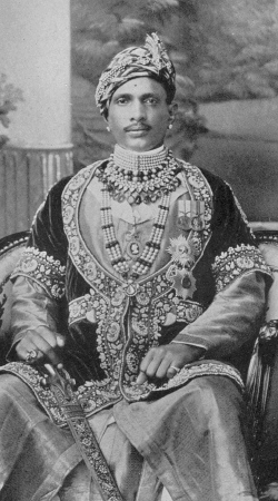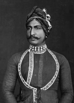 1892 - 1937 Colonel H.H. Raj Rajeshwar Bharat Dharma Prabhakar Maharaja Shri Sawai Sir Jai Singhji Veerendra Shiromani Dev Bahadur, Maharaja of Alwar, GCSI (3.6.1924, KCSI 1.1.1909), GCIE (1.1.1919, KCIE 12.12.1911). b. at Alwar, 14th June 1882, only son of Lieutenant-Colonel H.H. Raj Rishi Maharaja Shri Sawai Sir Mangal Singhji Veerendra Shiromani Dev Bharat Prabhakar Bahadur, Maharaja of Alwar, GCSI, by his third wife, a daughter of H.H. Raja Shri Bhairon Singhji Sahib Bahadur, Raja of Ratlam, educ. privately and at Mayo Coll, Ajmer. Succeeded on the death of his father, 22nd May 1892. Installed on the gadi 3rd June 1892. Reigned under a Council of Regency until he came of age and was invested with full ruling powers, by the Viceroy, Lord Curzon, in person, 10th December 1903. Indian representative at the Imperial Conference in London 1926. Cmsnd as Hon Lieut-Col British Army 1/1/1915, prom Hon Col 1/1/1921, Hon Col 46th (1st Alwar) Lancers, IA 10/1/1919, Hon Col 1st /145th Alwar (Jai Phaltan) Infantry, IA 10/1/1919, and General-in-Chief Alwar State Forces. Granted a personal salute of 17-guns, in recognition of the war services of his troops, 1st January 1921. The Maharaja’s increasingly oppressive policies eventually resulted in a wide-scale revolt by his Meo subjects. He was obliged to seek aid from British India, which sent in units of the Indian Army, ironically including Meo recruits, to put down the revolt. A detailed investigation into his involvement, increasingly bizarre and sadistic behaviour, together with his oppressive policies, eventually persuaded the Viceroy to intervene. He ordered Jai Singh to quit Alwar within forty-eight hours on 19th May 1933, and to live abroad for a minimum period of two years. Life Mbr Bombay Natural History Soc. Rcvd: Delhi Durbar gold medals (1903 and 1911). m. (first) at Kishengarh, 8th December 1897, H.H. Shri Rathorji Maharani Sugan Kunwar Sahiba (d. at Alwar, 20th May 1921), daughter of H.H. Umdai Rajahae Buland Makan Maharajadhiraj Maharaja Sir Sadul Singh Sahib Bahadur, Maharaja of Kishangarh, GCIE. m. (second) 17th April 1914, H.H. Jhareji Maharani Sahiba (d. by shooting herself with a revolver, at Alwar, 23rd March 1919*), daughter of Thakore Shri Balsinhji Raisinhji Sahib, Thakore Sahib of Khirasra, in Kathiawar, a niece of the Jam Sahib of Nawanagar. m. (third) 7th December 1919, H.H. Jadeji Maharani Sahiba, a lady from the Jadeja family of Rajpura, a relative of the Jam Sahib of Nawanagar. m. (fourth) 24th May 1930, H.H. Jhaliji Maharani Sahiba, a lady from the Jhala family of Doa (Dhuva), under Wankaner. He d. (found dead at the foot of his stairs), at Paris, France, 19th May 1937, having had issue, one daughter: