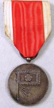 - Imperial Tour Commemorative Medal: instituted by Emperor Yung-hui to commemorate his tour of the South and West of the empire in 1909. Awarded as a circuler medal in two classes (1. First Class in solid gold – limited to the Imperial Family, 2. Second Class in solid silver – conferred on nobles and commoners). Ribbon: 37mm in red moiré with two 7mm white stripes towards each edge..