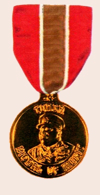 The General Service Medal: instituted by King Taufa’ahau Tupou IV on 4th July 1995 to reward meritorious services of a general nature, mainly to the Tonga Defence Services but also on occasion to members of the police, uniformed emergency services and civilians. Issued in one class, with named clasps for particular campaigns or actions.