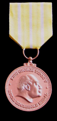 The Medal of the Royal Military Order of St George: instituted by King George Tupou V in 2009 to reward distinguished and meritorious military services by members of the uniformed services, including the Tonga Defence Services. Awarded in three classes (1. First Class in gold, 2. Second Class in silver, and 3. Third Class in copper). The medal is associated with the Royal Military Order of St George.